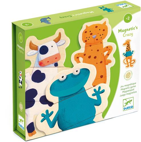 Met de DJECO puzzel Gekke dieren kunnen kinderen hun eigen favoriete diersoorten bedenken en creëren. Deze houten puzzel bestaat uit 24 magnetische puzzelstukjes waarmee eindeloos veel dierencombinaties gemaakt kunnen worden. Van grappige monsters tot fantasierijke wezens, de mogelijkheden zijn eindeloos! De magnetische stukjes zorgen ervoor dat de dieren stevig in elkaar blijven zitten tijdens het spelen en dat kinderen hun creaties gemakkelijk kunnen laten zien.