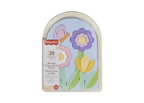 Fisher-Price houten bloemenpuzzelblokken voor kleuters, 37 houten blokken