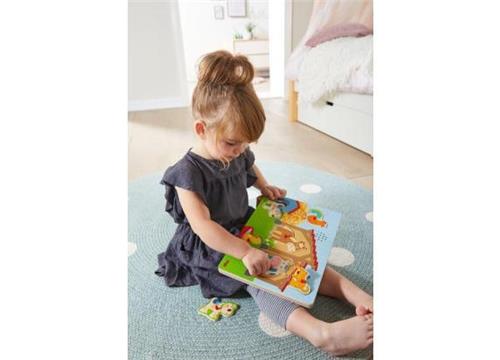 Met de Haba Geluidenpuzzel Op De Boerderij kunnen kinderen op een leuke en interactieve manier kennismaken met het boerderijleven. Laat je kind ontdekken, spelen en leren met deze prachtige geluidenpuzzel van Haba!