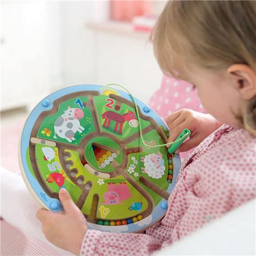 Het Haba Magneetspel Getallenlabyrint is een perfect spel voor kleine dierenvrienden om op een speelse manier hun fijne motoriek en begrip van getallen te ontwikkelen. Met het magneetstokje kunnen kinderen de gekleurde knikkers bij de bijpassende dieren ordenen, waardoor ze bijvoorbeeld kunnen zien hoe de vijf witte knikkers veranderen in eieren van het nest. Naast het plezier dat dit spel met zich meebrengt, stimuleert het ook belangrijke vaardigheden die essentieel zijn voor de ontwikkeling van kinderen.