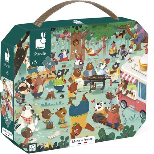 Ga mee met de berenfamilie op hun familiereünie midden in het hart van het bos met de Janod 54-delige kartonnen puzzel. Ontwikkel je geheugen en behendigheid terwijl je geniet van een prachtig geïllustreerd ontwerp dat liefde en samenhorigheid uitstraalt in een feestelijke sfeer. Kinderen zullen verrukt zijn bij het ontdekken van elk detail terwijl ze stukje bij stukje de puzzel compleet maken. Verpakt in een handige koffer-vormige doos, inclusief een poster voor beginners en ervaren puzzelaars, is deze puzzel perfect voor kinderen vanaf 5 jaar.