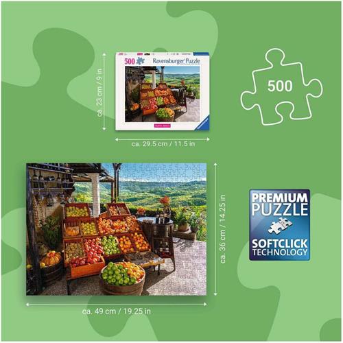 Controleer altijd voor aankoop de specificaties op de website van de webwinkel waar je Ravensburger Groente- en Fruitmarkt, Kroatië Legpuzzel 500 Stukjes aankoopt