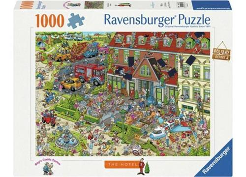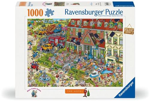 Ontsnap naar een vrolijke wereld vol grappige figuurtjes en dieren met Ravenburger's puzzel Holiday Resort 2 - The Hotel. Geïllustreerd door Ray Nicholson, bevat deze legpuzzel 1000 stukjes en brengt je naar een opwindend vakantiepark vol avontuur en plezier. Terwijl sommige gasten genieten van de rust bij het hotel, lijkt er altijd wel iets onverwachts te gebeuren - zoals een duikende man die plotseling opduikt!