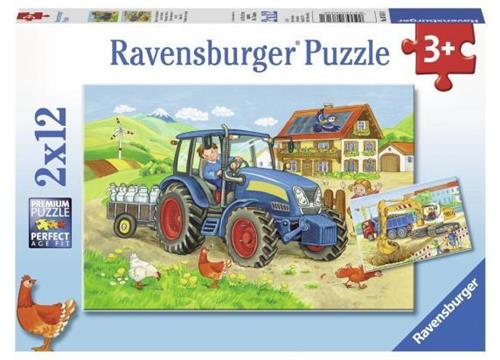 Ravensburger puzzel Op de bouwplaats en boerderij - 2x12 stukjes - kinderpuzzel