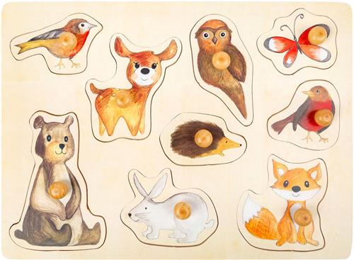 Small Foot - Houten Noppenpuzzel Bosdieren, 9st.