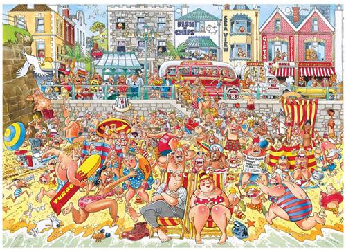 Met hoogwaardige kwaliteit puzzelstukjes die perfect in elkaar passen, zorgt deze nostalgische Wasgij puzzel van Jumbo voor urenlang puzzelplezier. Terug in de tijd ga je met deze puzzel, waarbij je niet simpelweg de afbeelding op de doos nabouwt, maar juist de afbeelding die de personen op de doos zien. Laat je nieuwsgierigheid de vrije loop en ontdek wat er werkelijk gaande is op het chaotische strand dat je ziet.